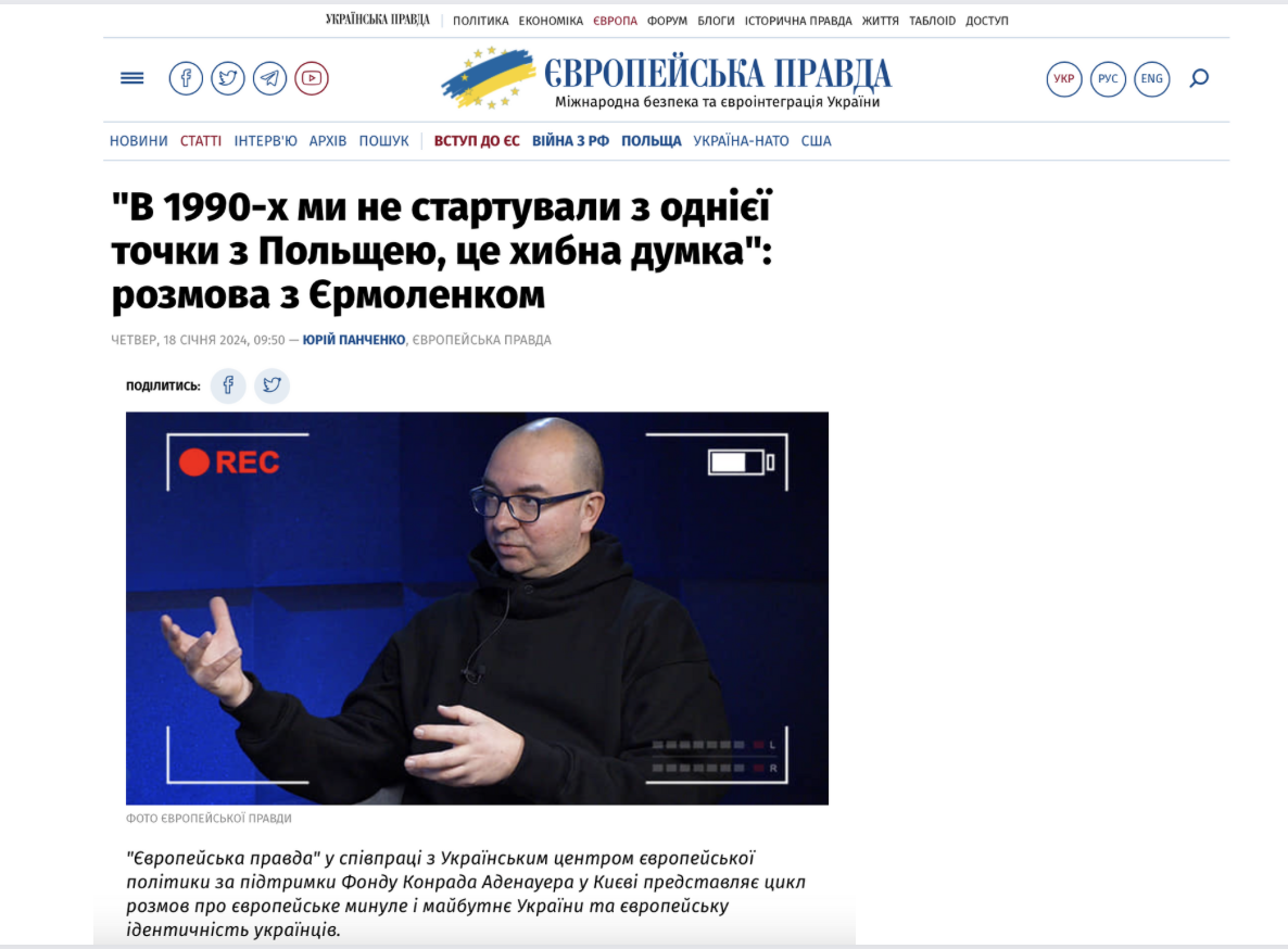"In the 1990s, we did not start from the same point as Poland, this is a misconception": an interview with Yermolenko