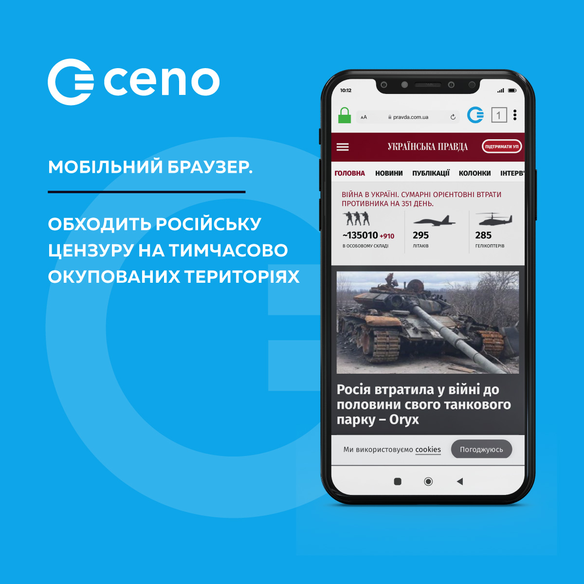We introduced Ukrainians to CENO, a mobile browser that works on Android devices and helps users in the temporarily-occupied territories of Ukraine bypass the Internet censorship that is an integral part of Russian occupation.