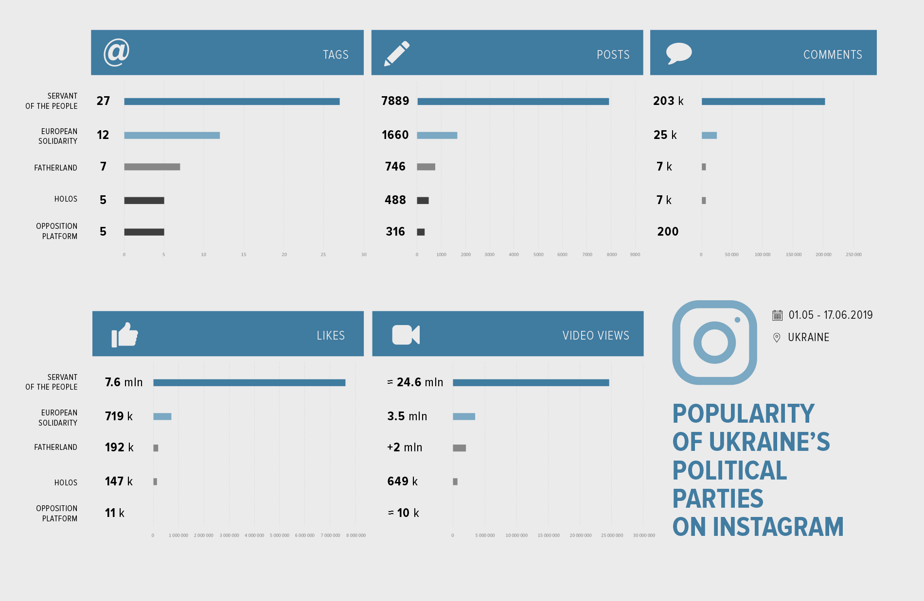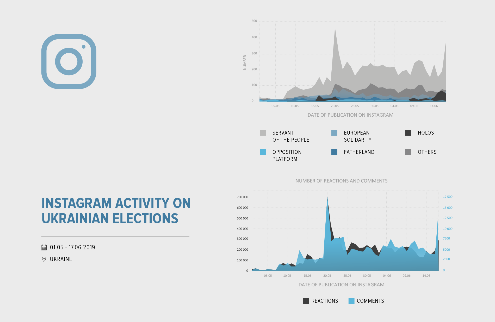 It was expected that Holos, a party led by Ukrainian rock singer Vakarchuk, would be able to challenge Zelensky in the young audience segment on Instagram. By mid-June, however, Vakarchuk had not succeeded. His party is mentioned in only 5% of election-related posts on Instagram. The late presentation of Vakarchuk’s party could be one of the reasons for this slow progress. In the next series of our study, we will see if Holos can make any step forward.
