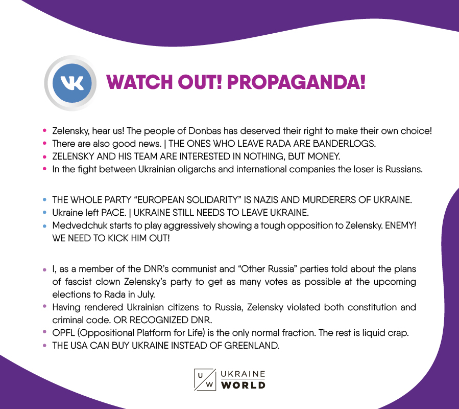 While the Opposition Platform For Life is perceived as pro-Russian in Ukraine, on VKontakte this party is criticized for being weak in terms of its political orientation. VKontakte users also see its members as “traitors” or as too disorganized to push the Russian agenda in Ukraine. While pro-Russian VKontakte often mentions Viktor Medvedchuk, Putin’s crony, as though he follows his own personal interests, the pro-Ukrainian camp bashes him for toxic pro-Kremlin activity.