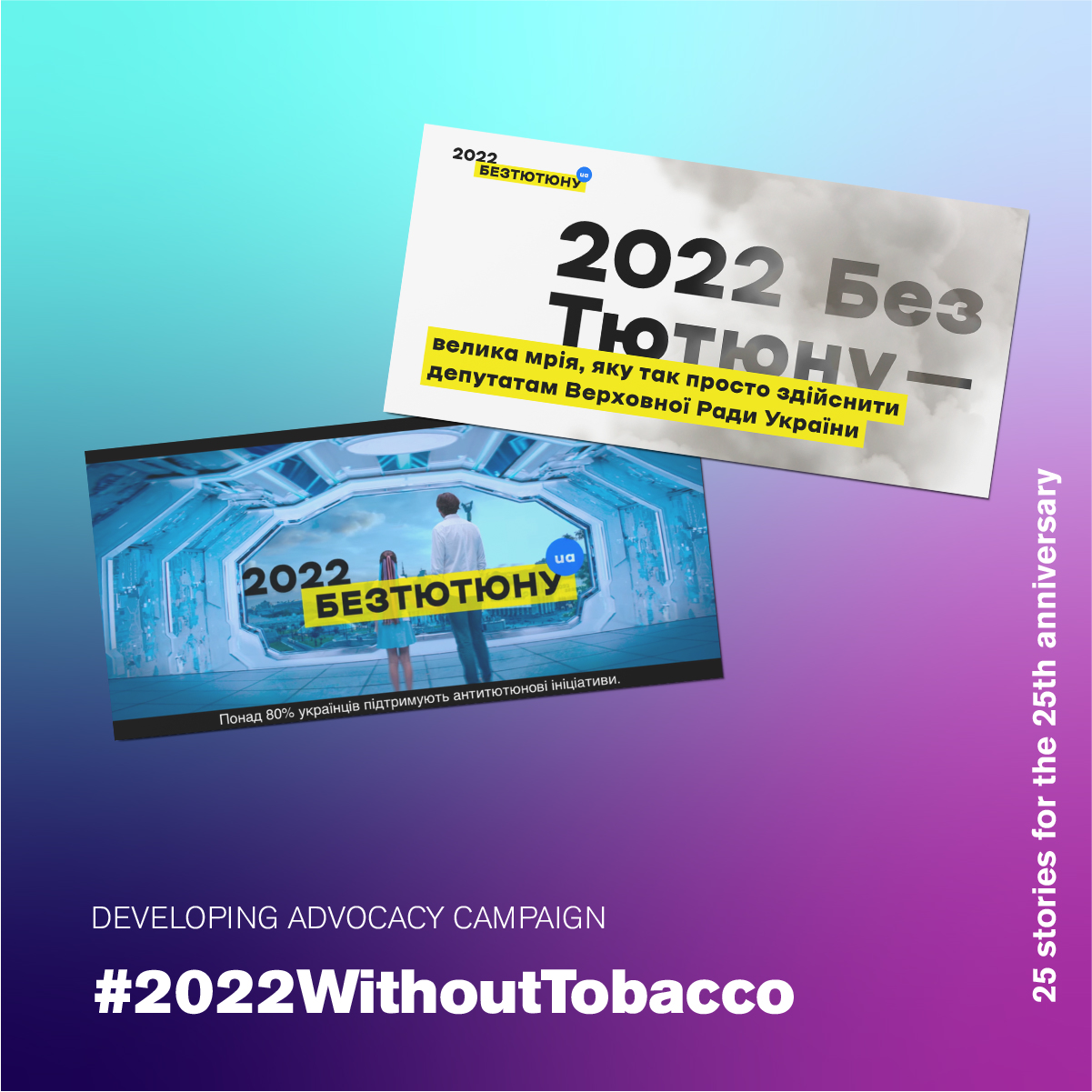 This was preceded by the #2022WithoutTobacco campaign, developed by us for the Life Center for Civic Representation. First, we tested the campaign’s messages in focus groups (including deputies and opinion leaders). On the basis of those results, we created key products for the campaign, including a video for TV and social media, the landing page for 2022notobacco.in.ua, posters, animated banners, and infographics.