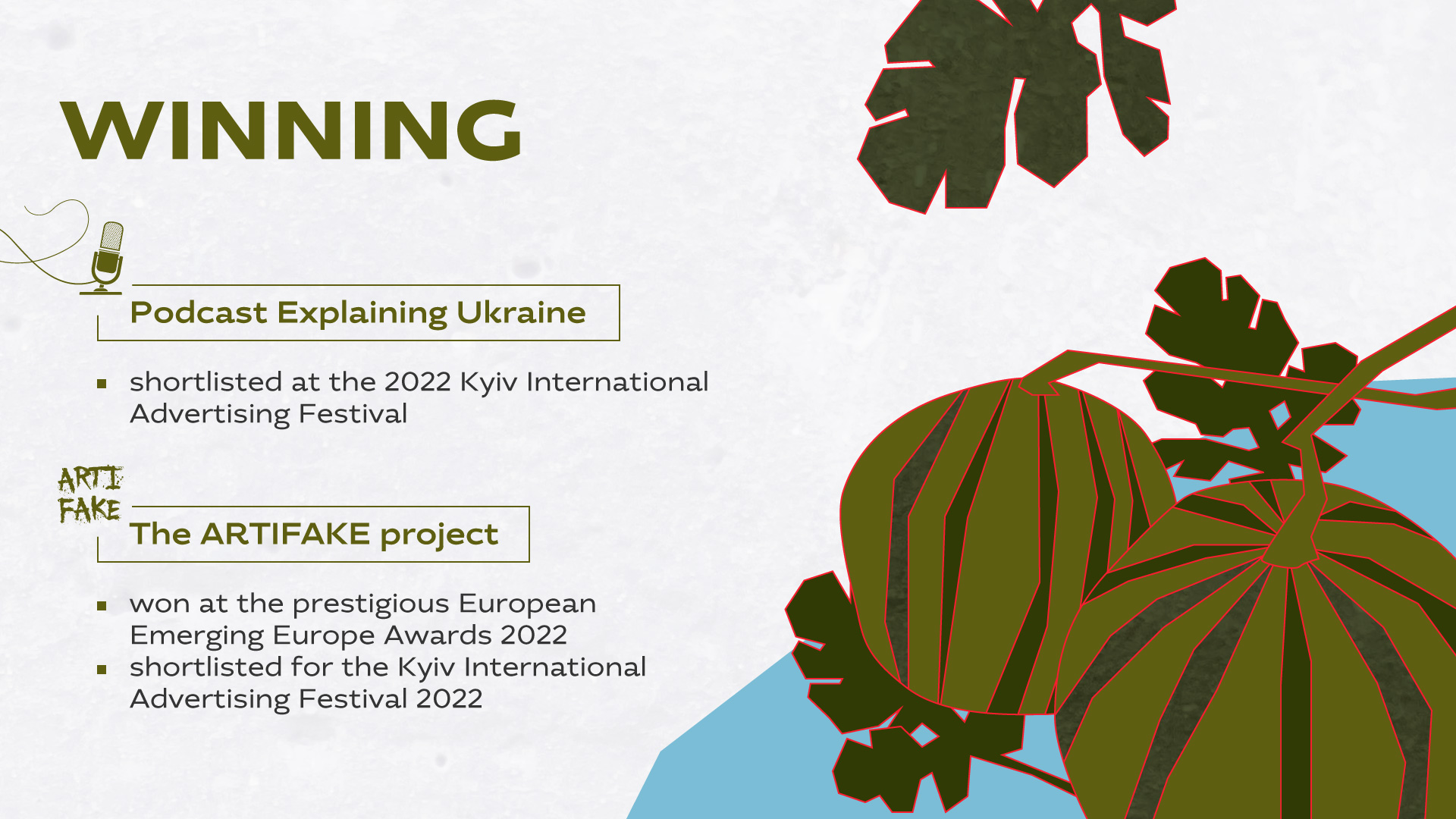 In addition, the ARTIFAKE project was shortlisted for the Kyiv International Advertising Festival 2022.