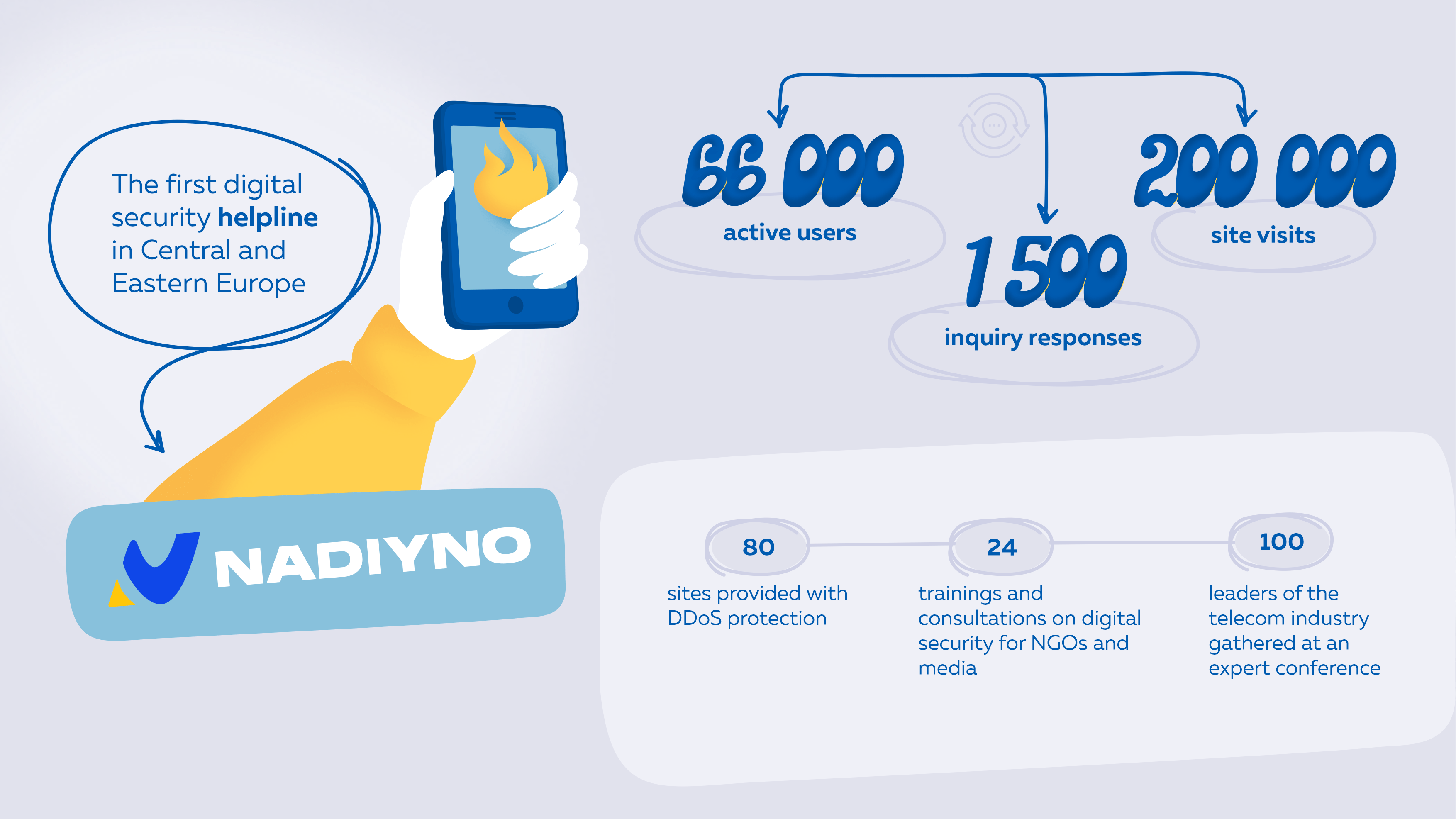 Together with the Canadian technology organization eQualitie, we started implementing a project on emergency support for Ukrainians in digital security. We jointly launched the first digital security helpline in Central and Eastern Europe, Nadiyno.org. The platform already has 66,000 active users and almost 200,000 site visits. Nadiyno.org operators helped to resolve 1500 queries. They also assisted Divoche.media when their Telegram channel was hacked, and also aided a Donetsk civil society organization to fend off Russian hacking attacks.