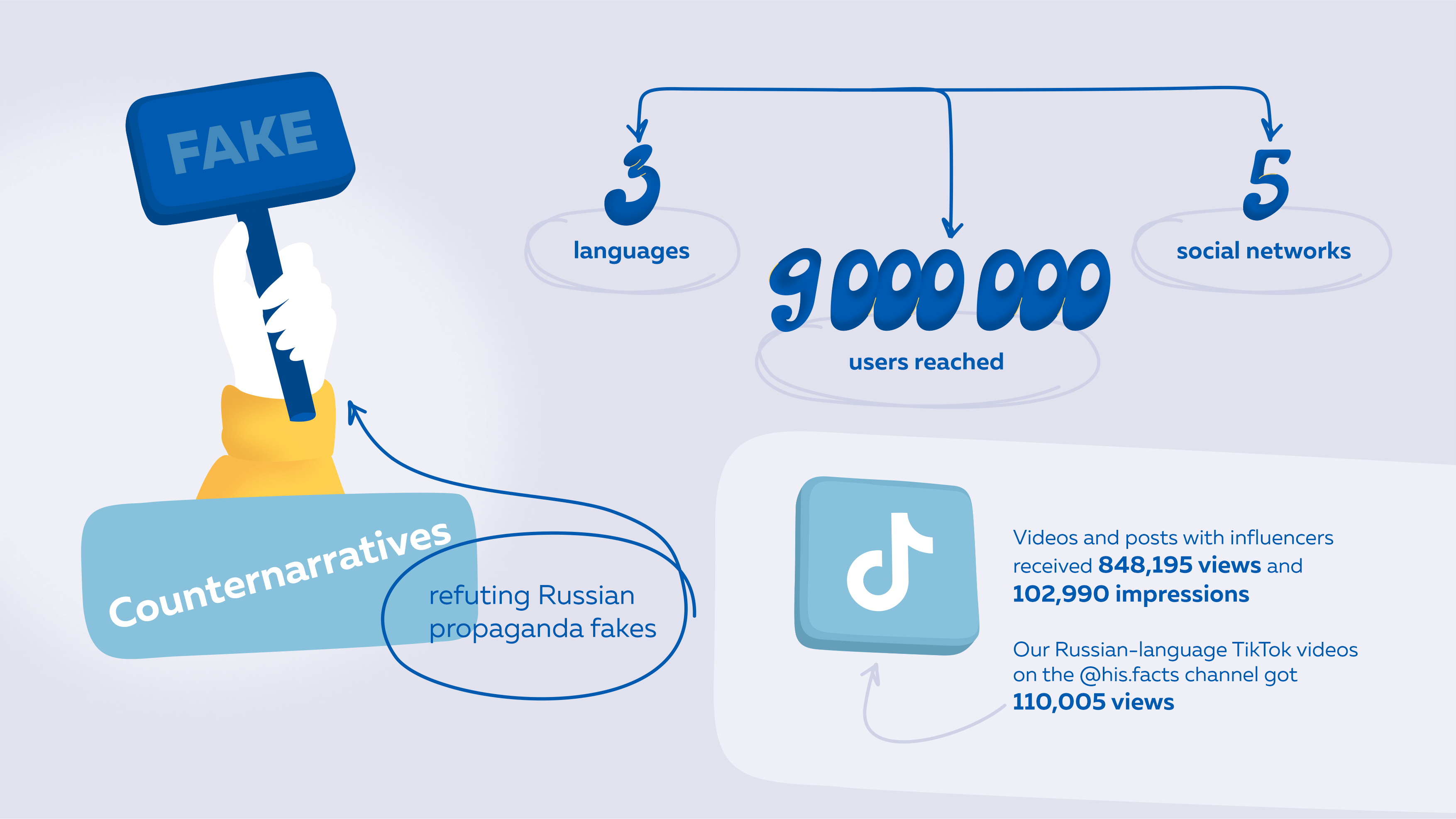 - Our Russian-language TikTok videos on the @his.facts channel were viewed 110,005 times.