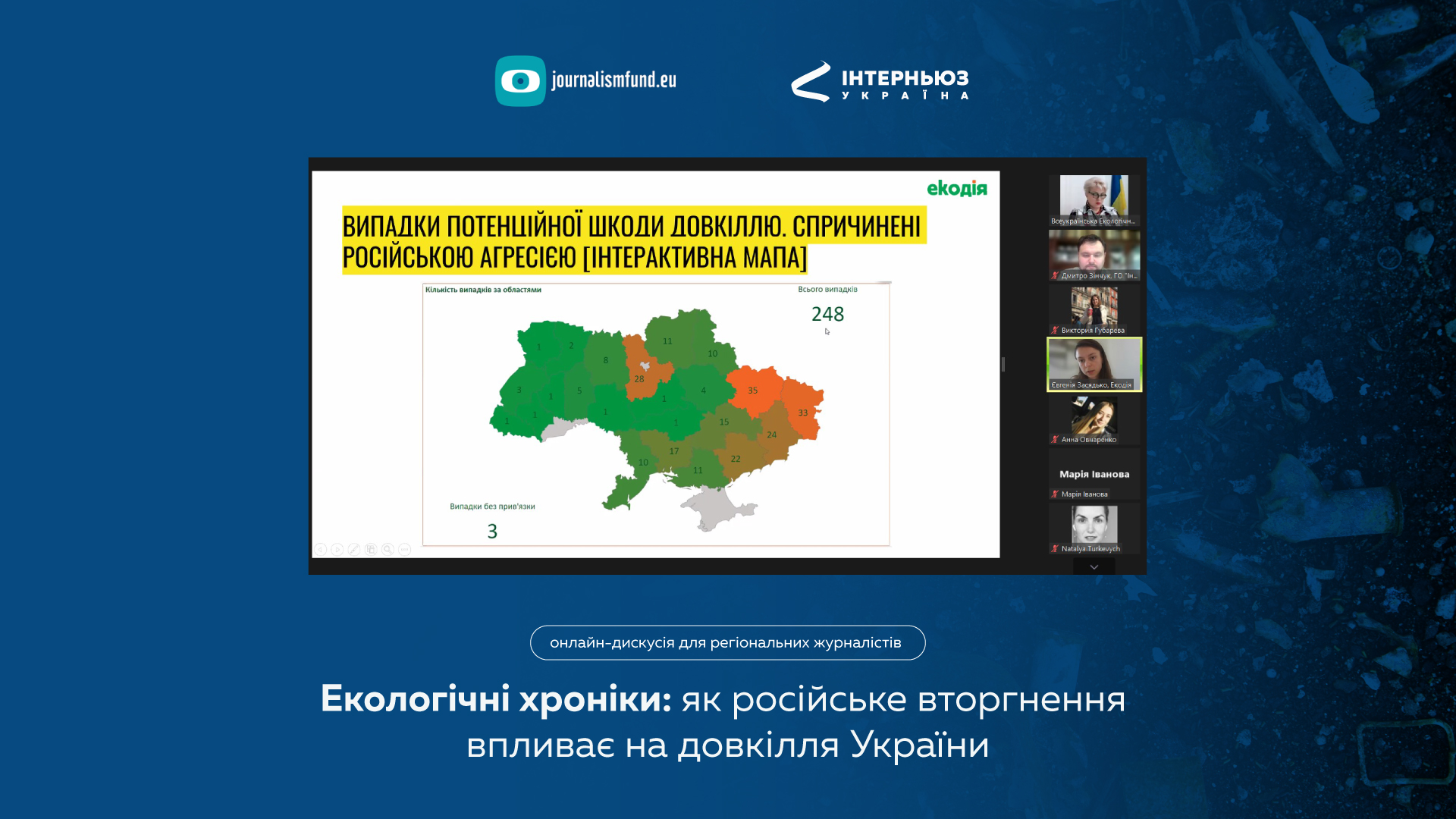 Учасники онлайн-обговорення долучилися до програми малих грантів для медіа за підтримки Journalism Fund. У результаті 16 журналістів підготували та опублікували 48 матеріалів про вплив війну на довкілля України.